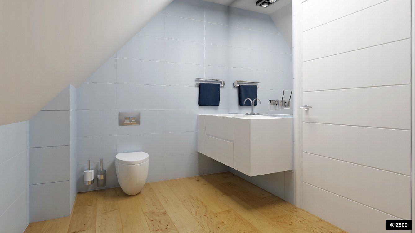 В объёме мансарды расположены четыре спальни и ванная. Просторное помещение над гаражом может быть использовано на усмотрение хозяина коттеджа под любые функции.