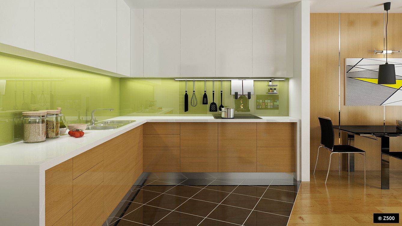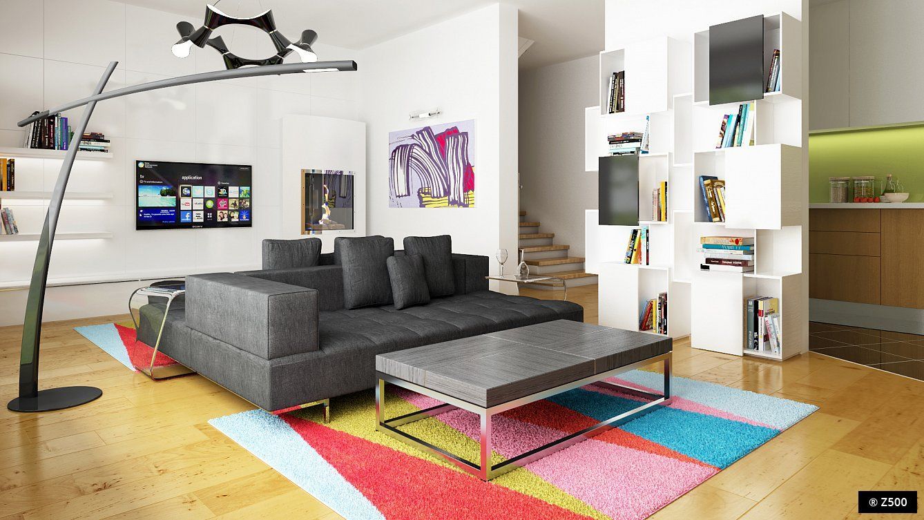 На первом этаже подразумевается дневная зона, которую используют все проживающие в доме. Гостиная с камином имеет выход на заднюю террасу, что позволяет с комфортом проводить досуг на открытом воздухе. Кухня частично отделена от пространства гостиной. Так же на нижнем уровне имеется небольшая комната, которая может использоваться в качестве офиса или гостевой спальни. В блоке с прихожей обустроен санузел и внутренний вход в гараж.