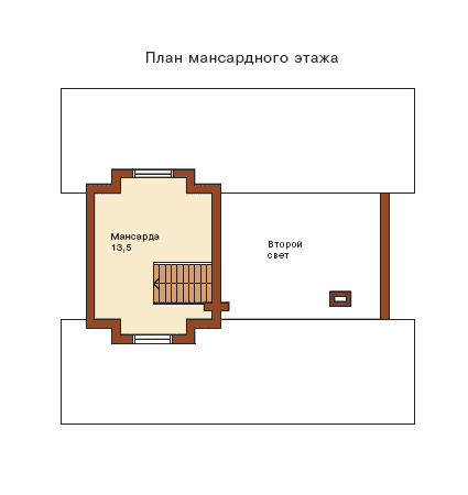 Небольшой, с крепко сбитым планом загородный дом может использоваться как для постояного проживания, так и в качестве вспомогательного сооружения в период возведения основного коттеджа. Небольшие габариты позволяют разместить его и на садовом участке. Центральным местом в доме является двусветная столовая-гостиная с печью-камином. Отсутствие подвального помещения предполагает возведение дома практически на любых грунтах.